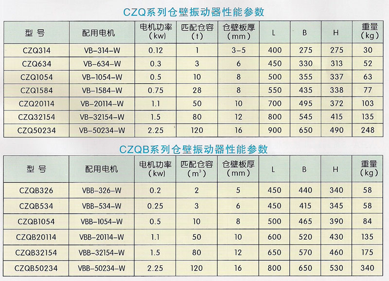 CZQ系列仓壁振动器可分为:普通和隔爆两个系列,具有结构简单,安装、使用、维修方便,能耗低、效率高、运行平稳、噪音低等特点。
